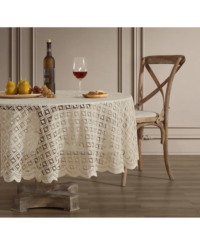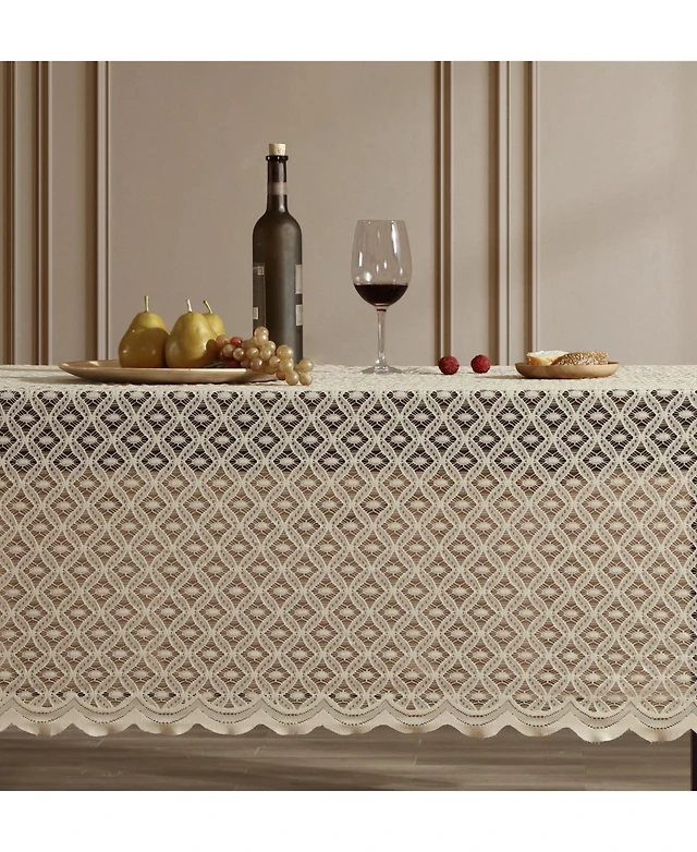 Hlc.Me Alona Lace Fabric Tablecloth Lace Fabric Table Cloth For Rectangle Round Tables Wrinkle Resistant Patterned Scalloped