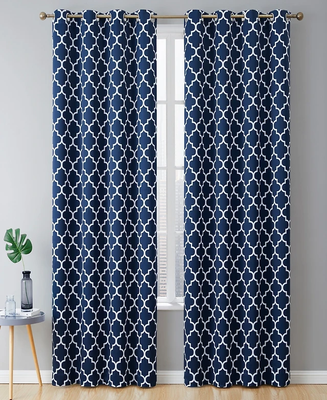 Hlc.Me Lattice Print Drape Blackout Curtains Pattern Weather Insulated Curtains Sun Blocking Window Treatment Draperies For Living Room Set Of 2