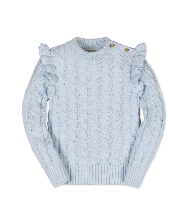 Hope & Henry Little and Big Girls' Organic Cropped Ruffle Cuff Cable Sweater Cardigan