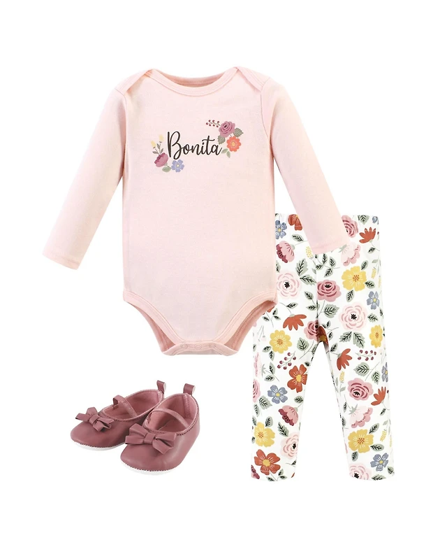 Hudson Baby Girls Layette Essentials Gown, Swaddle Wrap, and Headpiece Option