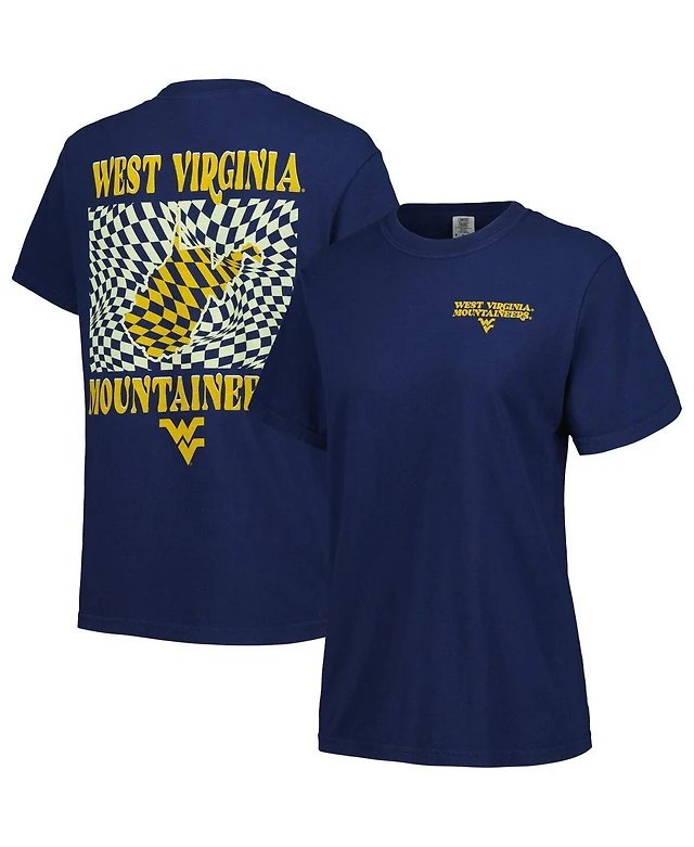 Image One Women's Navy West Virginia Mountaineers Comfort Colors Checkered Mascot T-Shirt