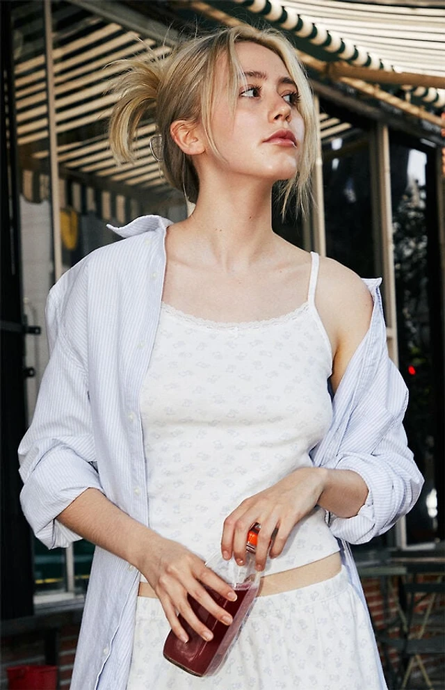 John Galt Pink Lace Beyonca Cropped Tank Top