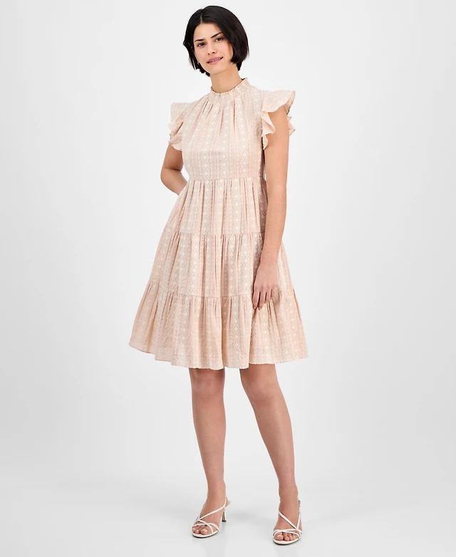 julia jordan Women's High-Neck Tie-Wast Tiered Shirtdress