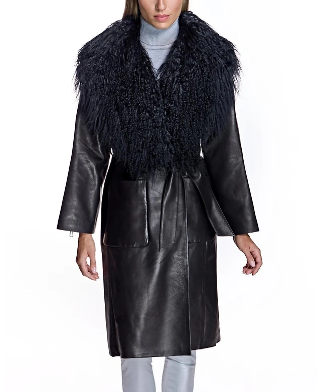 Julia & Stella by Maximilian Women's Leather Coat with Shearling Trim