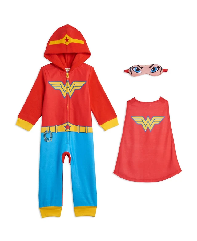Justice League Toddler Boys Dc Comics Zip Up Pajama Coverall Cape and Mask 3 Piece Costume Set