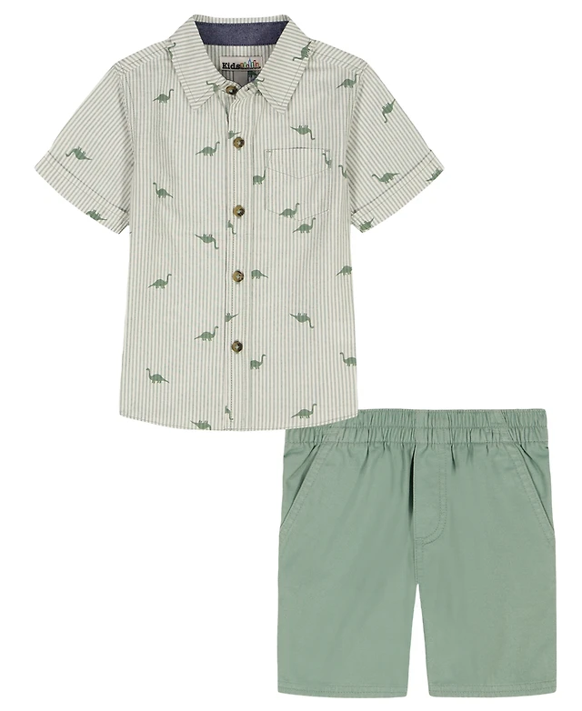 Kids Headquarters Boys' 2T-5 Short-Sleeve Dino Print Poplin Shirt & Cargo Shorts, 2-Peice Set