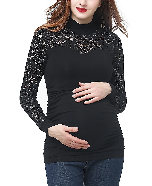 kimi + kai Maternity Lace Shoulder Ruched Top
