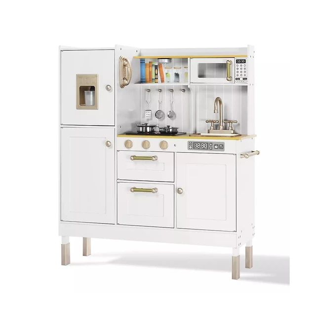 Kinder King Wooden Kids Play Kitchen, Pretend Kitchen Playset w/Sounds for Toddlers.