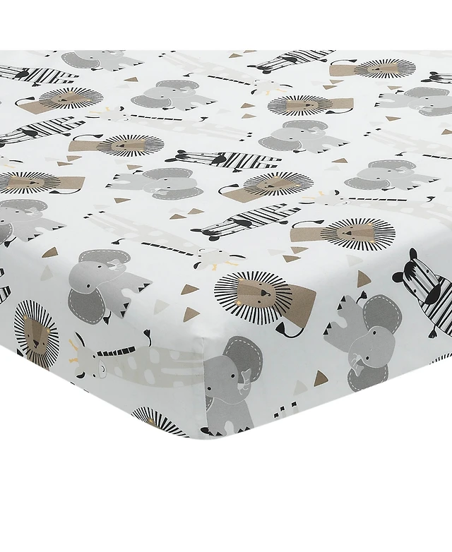 Lambs & Ivy Baby Jungle Safari Cotton White/Gray Elephant/Lion Fitted Mini Crib Sheet