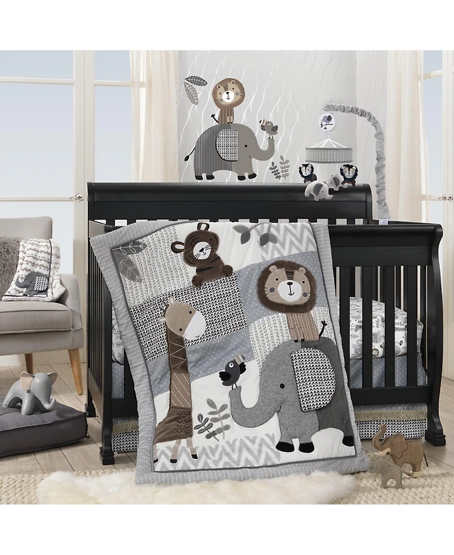 Lambs & Ivy Jungle Party 3-Piece Elephant/Monkey Baby Crib Bedding Set
