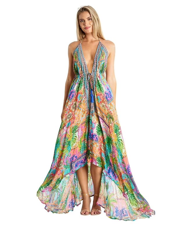 La Moda Clothing Women's Maxi Tropical Print Halterneck Dress