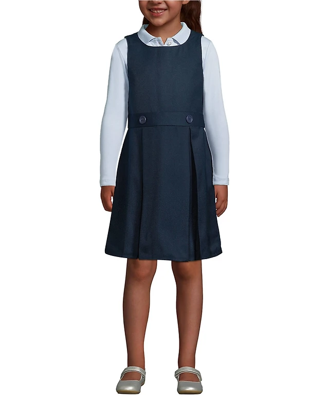 Lands' End Girls School Uniform Long Sleeve Peter Pan Collar Polo Shirt