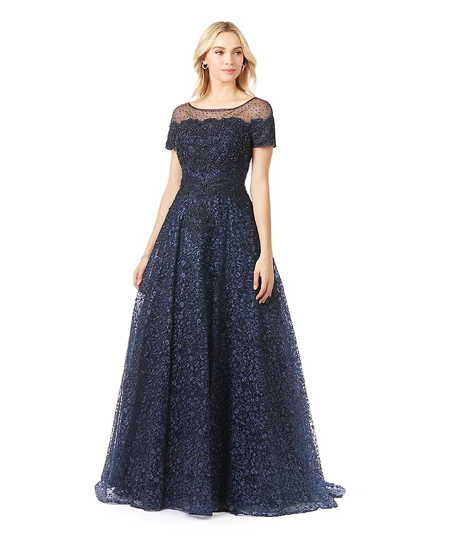 Lara Women's Cap Sleeve Beaded A-Line Gown