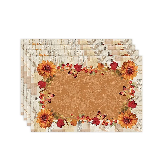 Laural Home Harvest Snippets Set of 4 Placemats, 13" x 19"