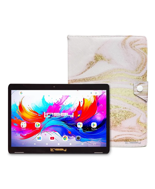 Linsay 10.1"Octa Core 256GB Storage Android 15 Tablet with Rainbow Marble Case
