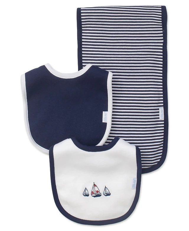 Little Me Baby Boys Sailboats Bibs and Burp Cloth, Pack of 3