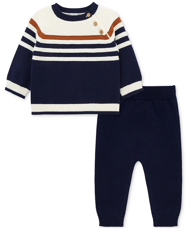 Little Me Baby Boys Cotton Striped Sweater & Pants, 2 Piece Set