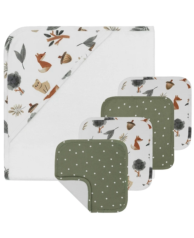 Living Textiles Infant 5pc cotton hooded towel and washcloth Bath Gift Set