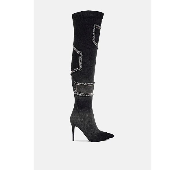 Lobelia Rhinestones Embellished Stiletto Boots