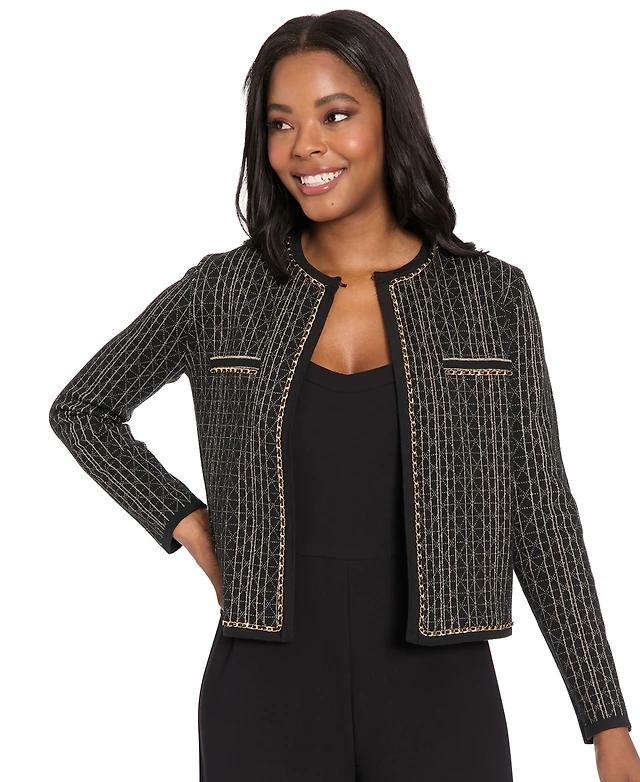 London Times Petite Long-Sleeve Fit and Flare Dress