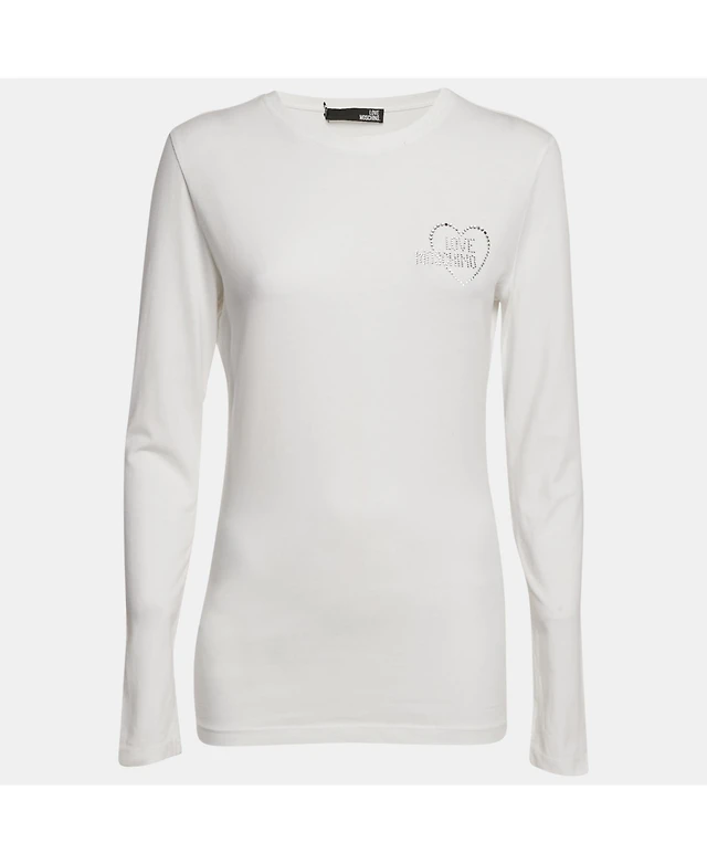 Pre-Owned Love Moschino Women's Logo Rhinestone Jersey Long Sleeve T-Shirt