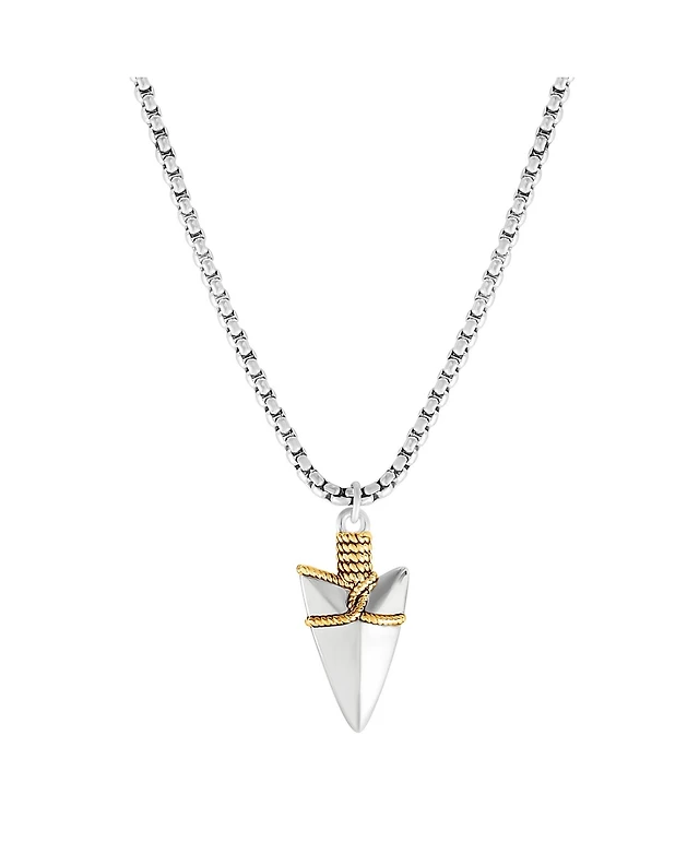Lucky Brand Stainless Steel Cross Necklace for Men 24", Two-Tone Pendant Necklace, Cross Jewelry