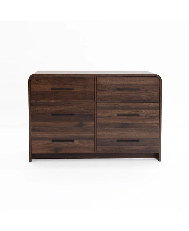 LuxenHome Modern Walnut Finish 6-Drawer Dresser, Engineered Wood Storage Chest with Rounded Corners