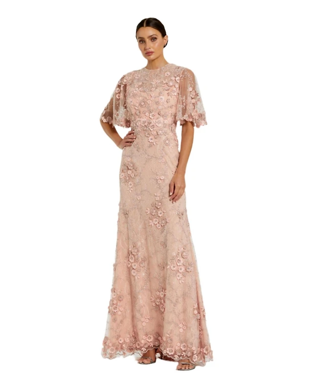 Mac Duggal Women's Flutter Sleeve Floral Embroidered Net Gown