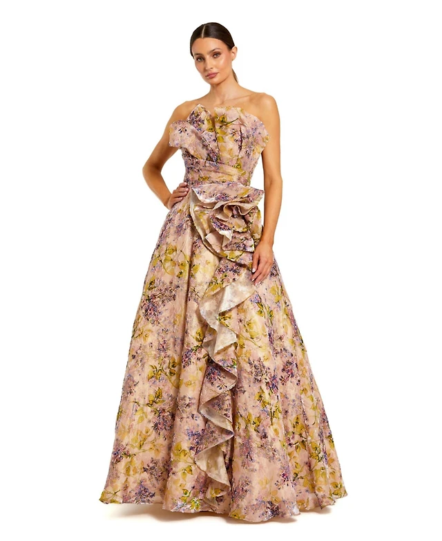 Mac Duggal Women's Strapless Floral Jacquard Formal Evening Gown