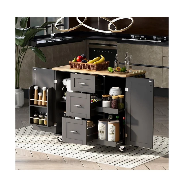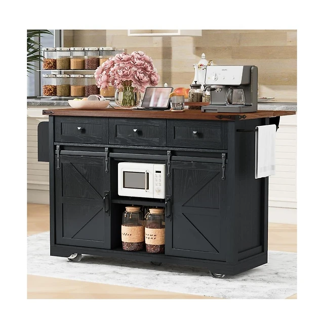Farmhouse Kitchen Island Cart with Solid Wood Top, Ample Storage, Towel Rack & Locking Wheels, Rolling Buffet Table-Maison Boucle