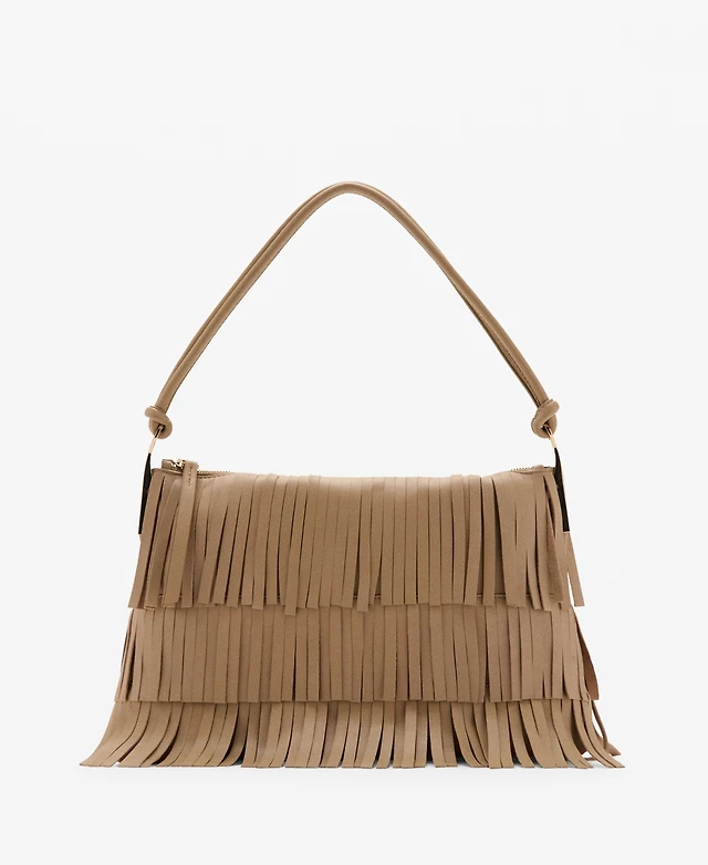 Mango Women's Fringes Detail Large Leather Shoulder Bag