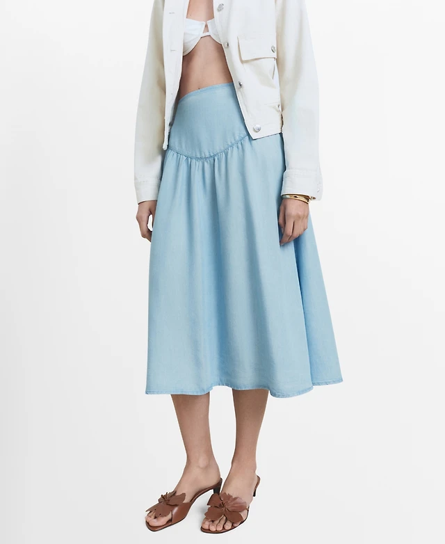 Mango Women's Gathered Detail Lyocell Midi Skirt