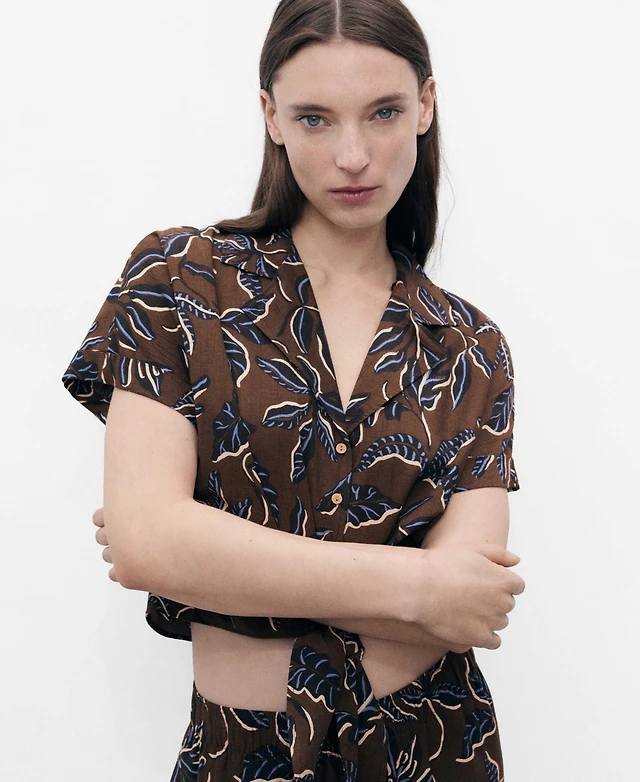Mango Women's Short Sleeves Printed Cotton Shirt