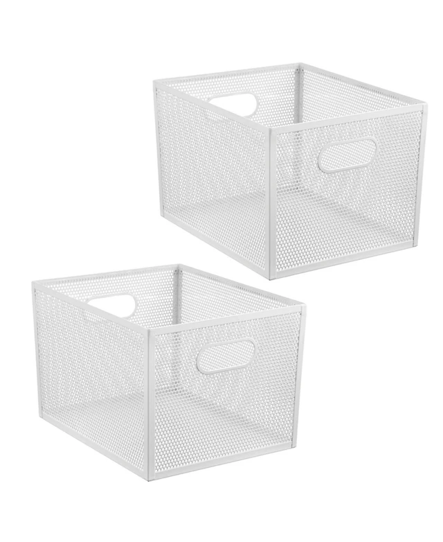 mDesign iDesign Metal Pantry Basket with Handles - Set of 2, Matte White