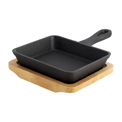 MegaChef 6 Piece Mini Cast Iron Square Pan with Wood Tray