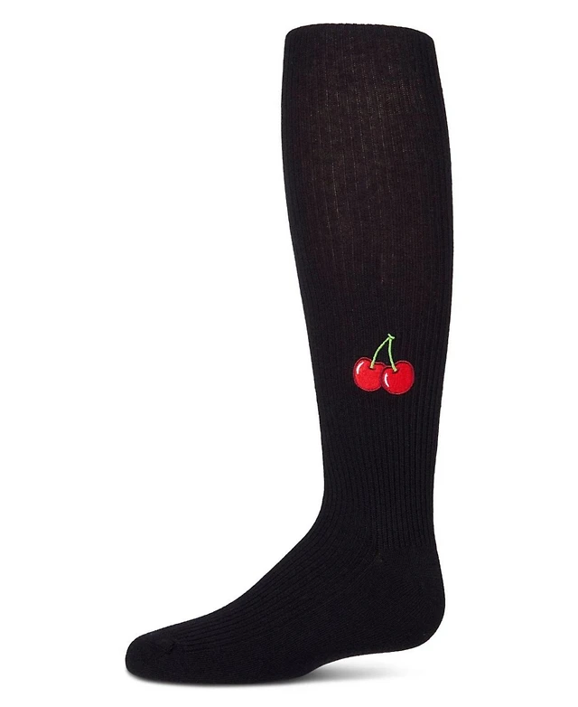 MeMoi Girls Opaque Cherry-Pattern Flocked Tights