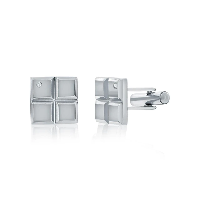Metallo Stainless Steel, Square Single Cz Cuff Links