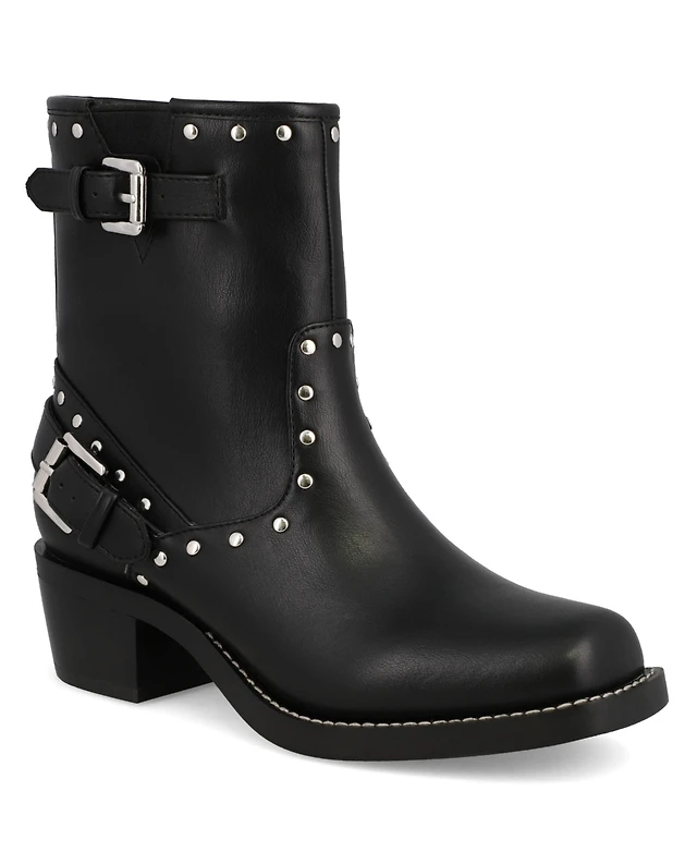 Mia Women's Delores Square Toe Studded Buckle Booties