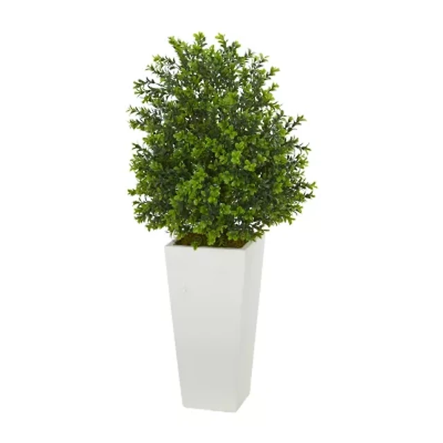 Boxwood Evergreen Artficial Plant in White Vase (Indoor/Outdoor)