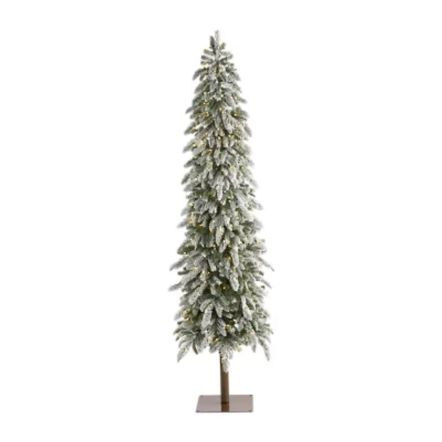 Nearly Natural Frosted 8 Foot Pre-Lit Flocked Pine Christmas Tree