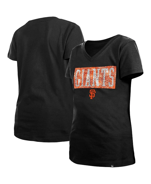 Big Girls New Era Black San Francisco Giants Flip Sequin Team V-Neck T-shirt