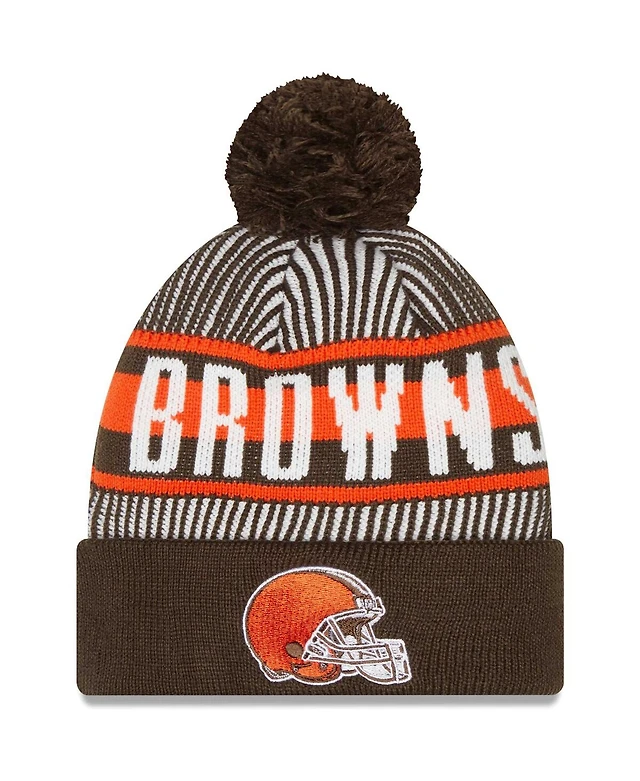 Men's New Era Brown Cleveland Browns Striped Cuffed Knit Hat with Pom