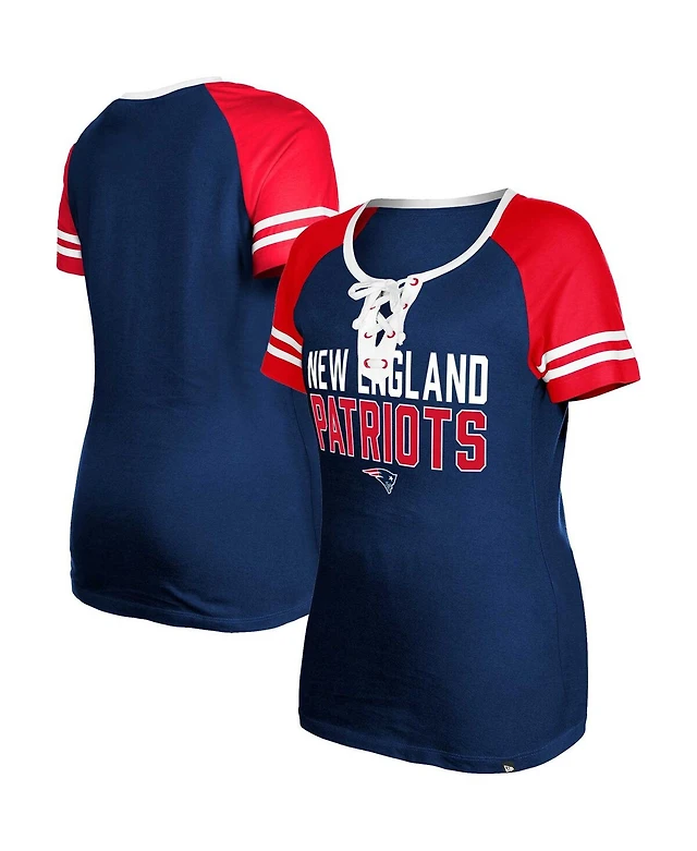 Women's New Era Navy New England Patriots Raglan Lace-Up T-shirt