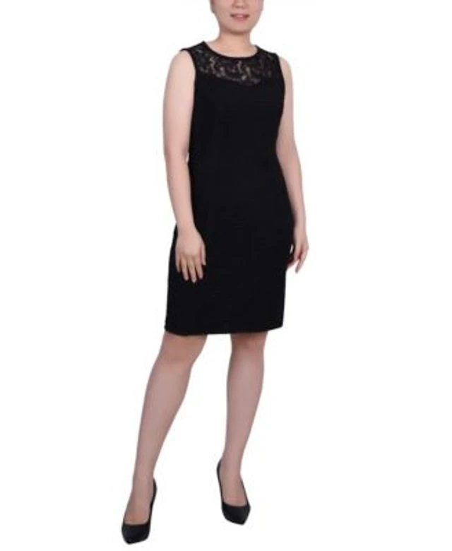 Ny Collection Petite Short Sleeve Dress with Mesh Insets