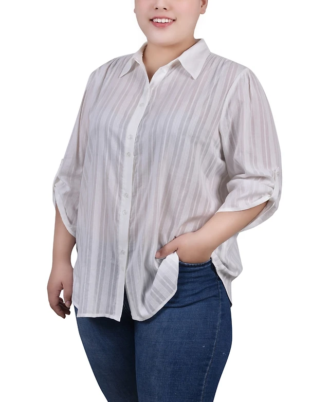 Ny Collection Plus Roll Tab Sleeve Zip Front Top