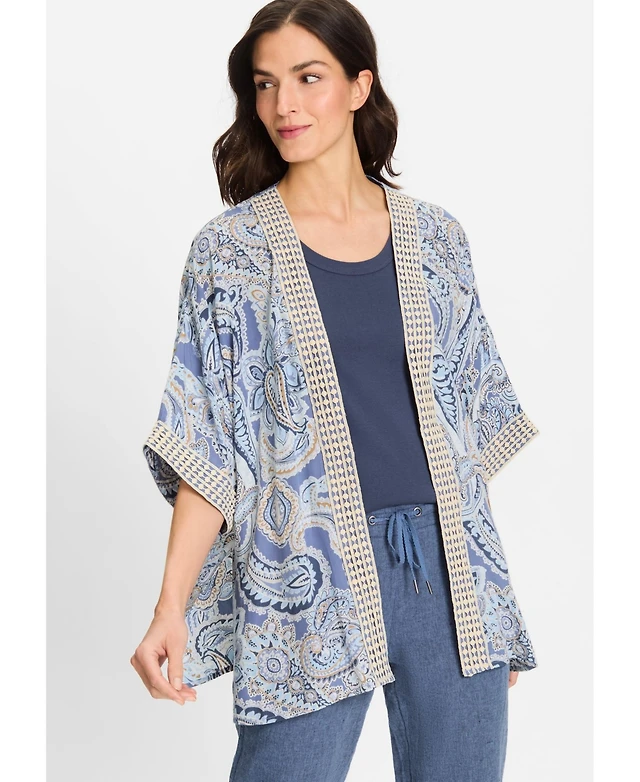 Olsen Women's Paisley Kimono with Embroidered Trim