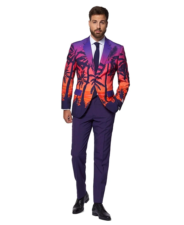 OppoSuits Men's Suit - Summer Sunset Party Outfit Slim Fit Purple Orange and Black Includes Blazer, Pants Tie