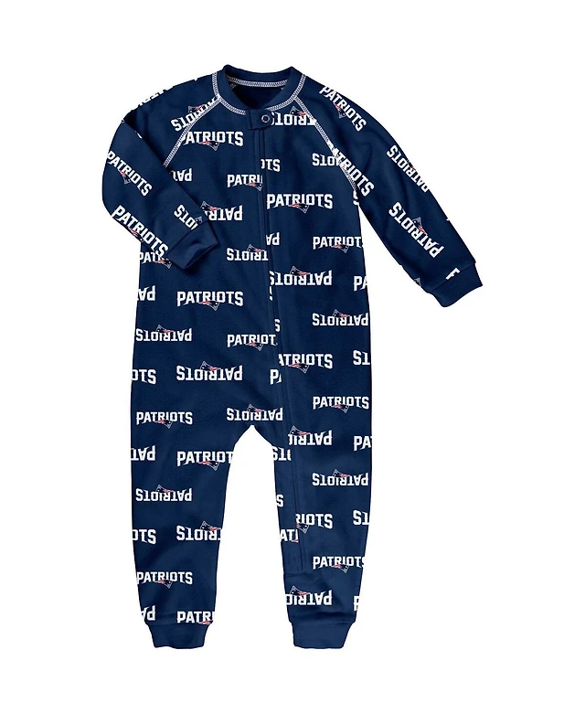 Toddler Boys and Girls Navy New England Patriots Allover Print Raglan Full-Zip Sleeper