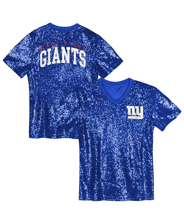 Outerstuff Big Girls Royal New York Giants Wordmark Sequin V-neck Top
