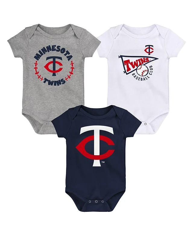 Infant Boys and Girls Navy and White and Heather Gray Minnesota Twins Biggest Little Fan 3-Pack Bodysuit Set